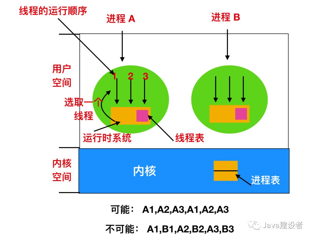 。用户级线程的切换需要少量的机器指令(想象一下 Java 程序的线程切换),而内核线程需要完整的上下文切换,修改内存映像,使高速缓存失效,这会导致了若干数量级的延迟。另一方面,在使用内核级线程时,一旦线程阻塞在 I/O 上就不需要在用户级线程中那样将整个进程挂起。