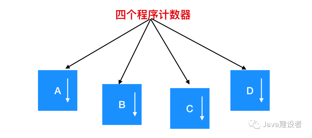 如上图所示,这是一个具有 4 个程序的多道处理程序,在进程不断切换的过程中,程序计数器也在不同的变化。