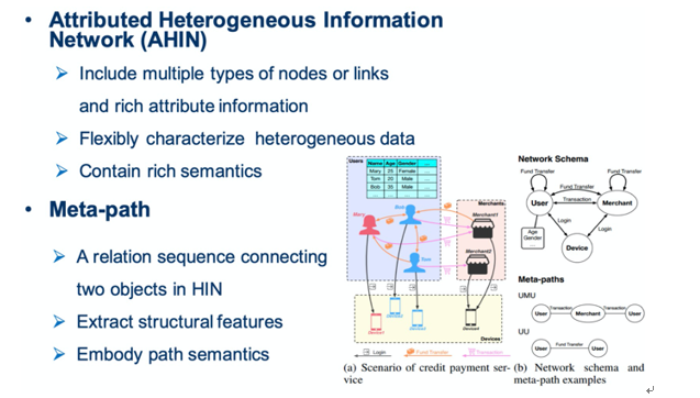 也提出了很多其他一些概念,例如元图,元结构,以及有约束的元路径等一些概念,它可以更细致的描述网络里面的属性信息。